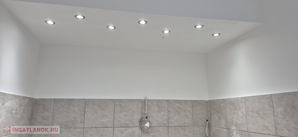 Spotlámpák lettek felszerelve az álmennyezetbe.Az álmennyezettel csökkent a belmagasság, kedvezőbb a fűtése a szép helyiségnek.