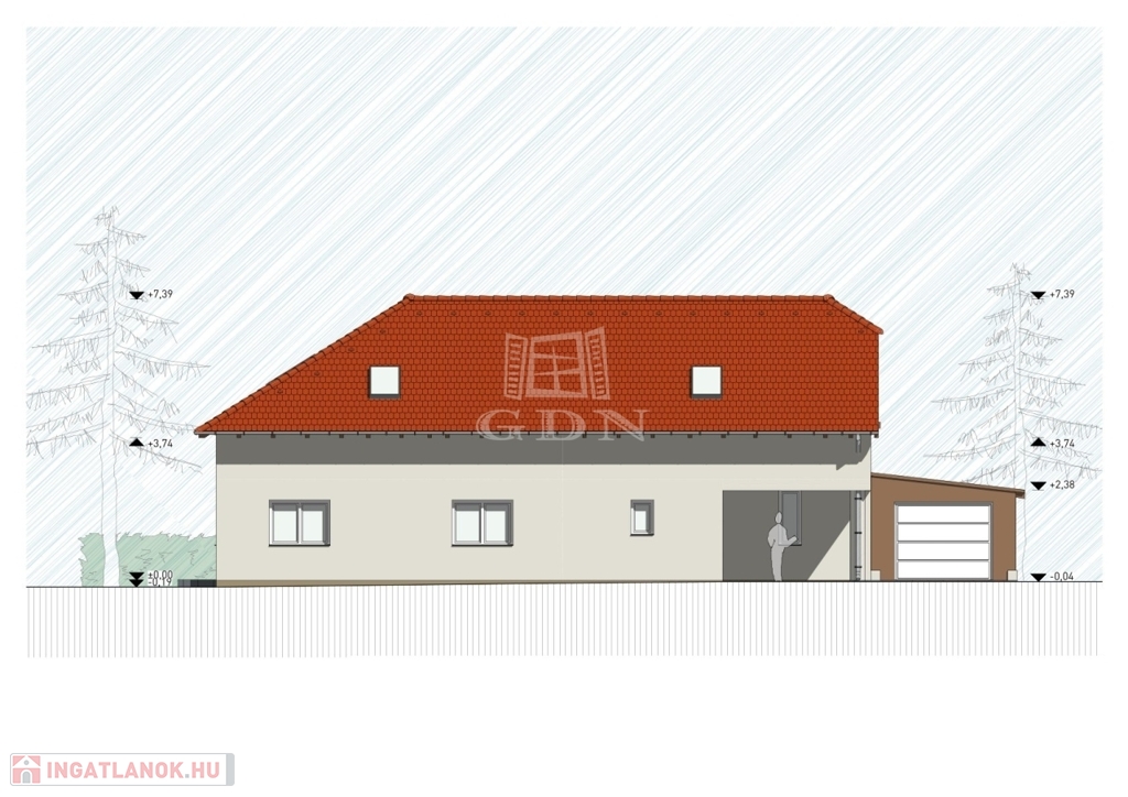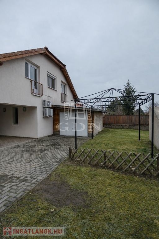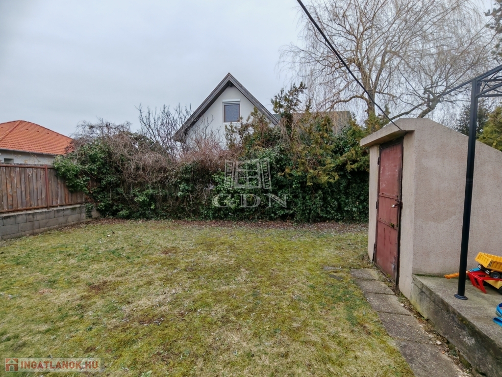 A ház egy 713 m²-es, rendezett, sík telken helyezkedik el, garázzsal és kb. 10 m²-es földes pincével.