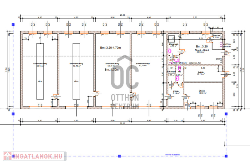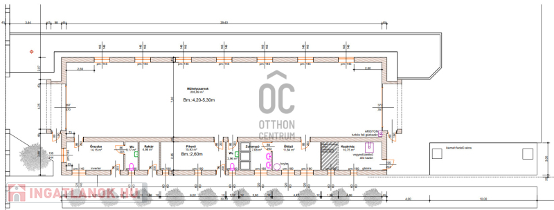 * 320 m2, 4 állásos szerelő műhely és szociális blokk
