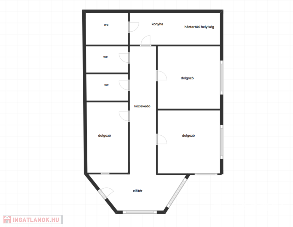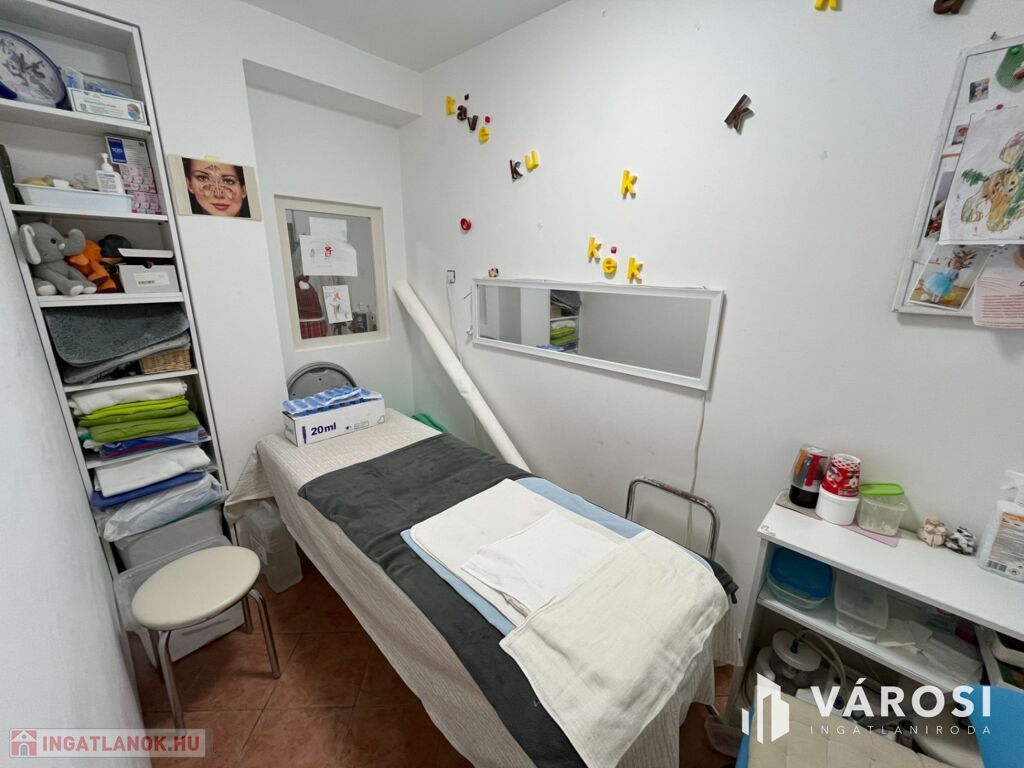 A helyiség praktikus elrendezéssel rendelkezik, három kezelőhelyiséggel, váróval, három mosdóval, teakonyhával minden igényt kielégít.