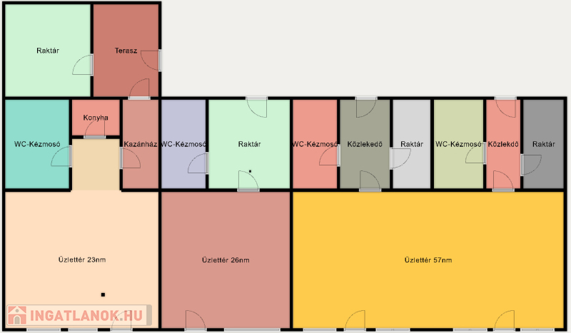 4 különálló üzlethelyiség, mindegyik külön bejárattal