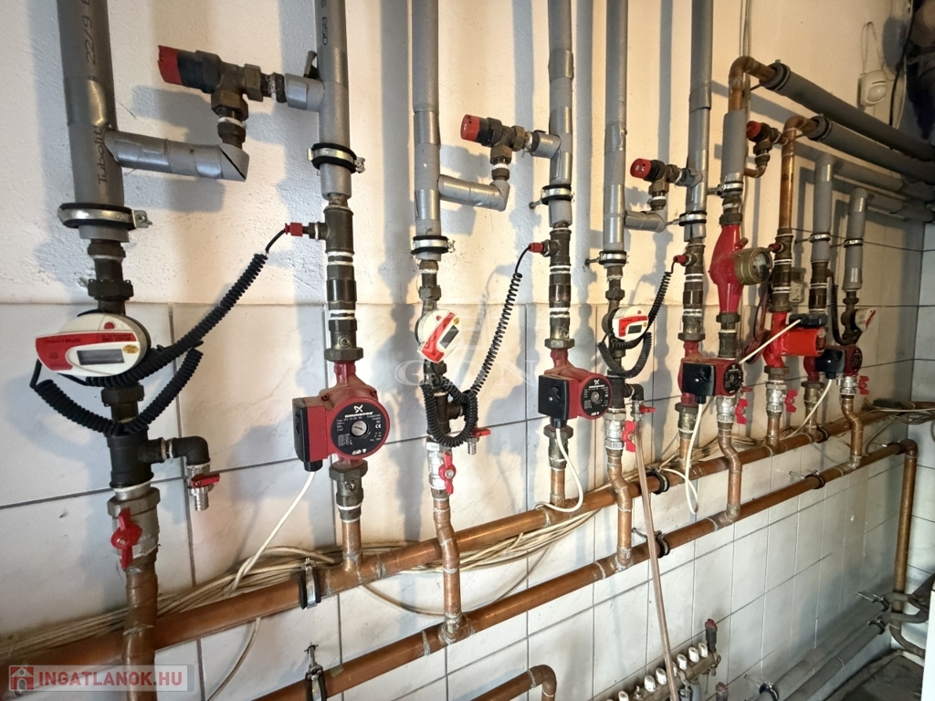 Az ingatlan víz- és fűtésrendszere főmérőkkel és almérőkkel is rendelkezik, így az egyes épületrészek rezsifogyasztása külön-külön mérhető és elszámolható. A fűtési rendszer két kazánnal működik, amelyek közül az egyik tartalék kazánként biztosítja az üzembiztonságot. A főépület szervizcsarnokában ezen felül külön gázzal működő hőlégbefúvó is felszerelésre került, amely gyors és hatékony felfűtést tesz lehetővé nagy belmagasság mellett is.