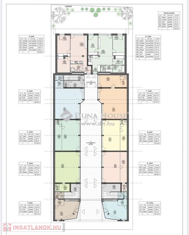 Érd városközpontban jó parkolási kondíciókkal, 2025.május végi átadással üzletek, irodák 37,4m2-78,4m2-ig eladók.Alaprajzok, elhelyezkedés, típusok a képek között megtekinthetők, a még szabad üzletekről érdeklődjön.Szerkezeti leírás:Beton sávalap. 30-as tégla főfalak + 20cm grafitos hőszigetelés.Az irodák / üzletek közötti válaszfalak 10cm-es hanggátló kerámia falak 2x5cm kőzetgyapottal, valamint 2x2rtg gipszkartonnal.A szintek között beton födém található, a zárófödém könnyűszerkezetes, kőzetgyapot szigeteléssel.A tető bordázott szendvicspanel fedésű.A nyílászárók 3 rétegű üvegezésűek, belül fehér, kívül szürke színben.