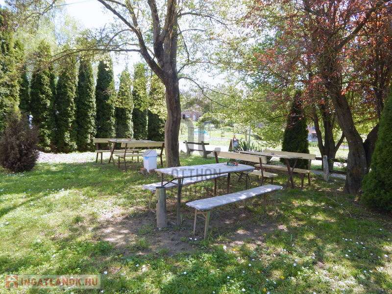 Az épület előtt fedett terasz, kerti kiülők, külső raktárhelyiség találhatók. A tágas belső terek könnyen alakíthatók. Cserépkályha biztosítja a meleget, teljes közművekkel ellátott. A villanyvezeték az üzlettérben egy éve át lett vezetékelve.