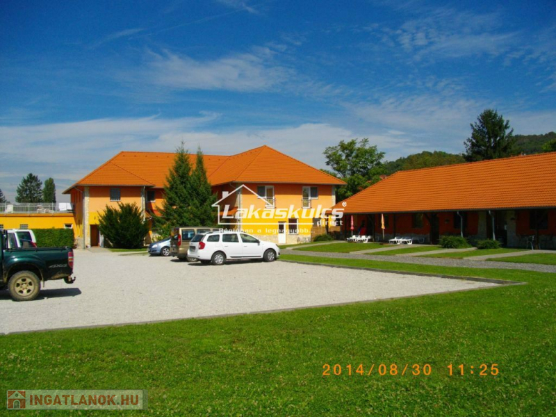 GYENESDIÁSON 4,3 ha-os területen 2.000 m2 összes beépítettségű kemping, panzió, étterem, lakóház, wellness- és egyéb kiszolgáló egységek a kerékpárút mellett eladó. Az ingatlannak teljes infrastruktúrája van. Területén található: teniszpálya, petanque pálya, bográcsozásnak tűzrakóhely, röplabdapálya, pingpongasztal, 2 db autóparkoló, kültéri medence, szauna, masszázs, raktárak és gépészet a megfelelő helyiséggel.