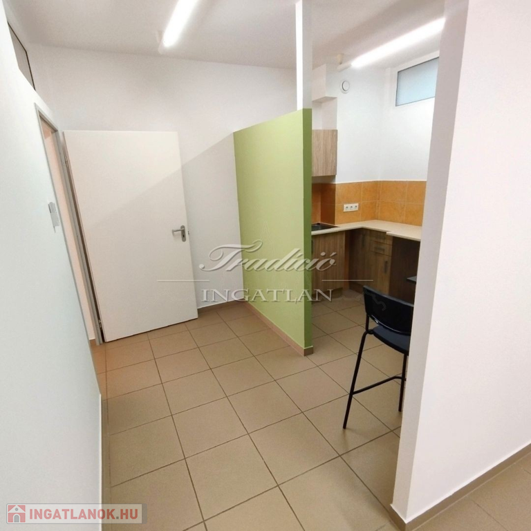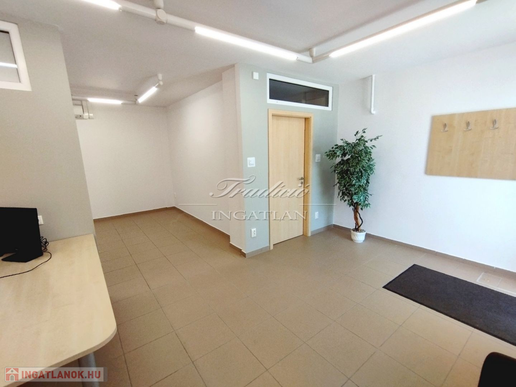 A 103,5 m2-es iroda elrendezése végett akár üzletnek, bemutatóteremnek is alkalmas lehet. A több helyiségből álló ingatlanban étkező-konyha, raktár, tárgyaló és vizesblokk is kialakításra került.