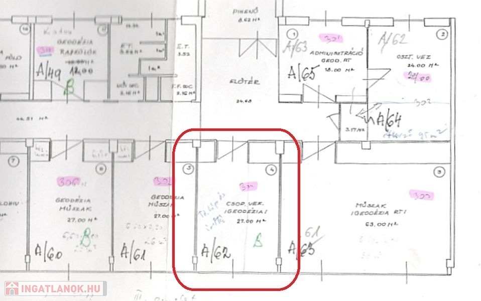 15m2, 26m2, 53m2 és egy kétlégteres 42m2-es irodák állnak rendelkezésre, amelyek irodaházban találhatóak. Liftes épület, de nem akadálymentesített. Parkolás közterületen megoldható. Az irodákhoz vásárolható 1 db 2m2 irattároló, ami a folyósóról közelíthető meg, illetve 2db 10m2 pince tároló. Ezek külön megegyezés részét képezik.