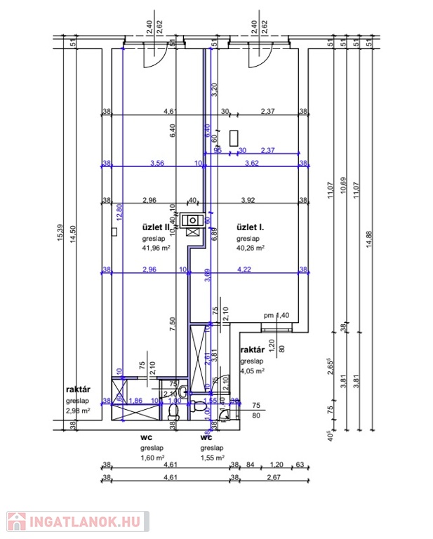Közvetlen utca fronti dupla bejáratú, nagy kirakattal rendelkező üzlet.