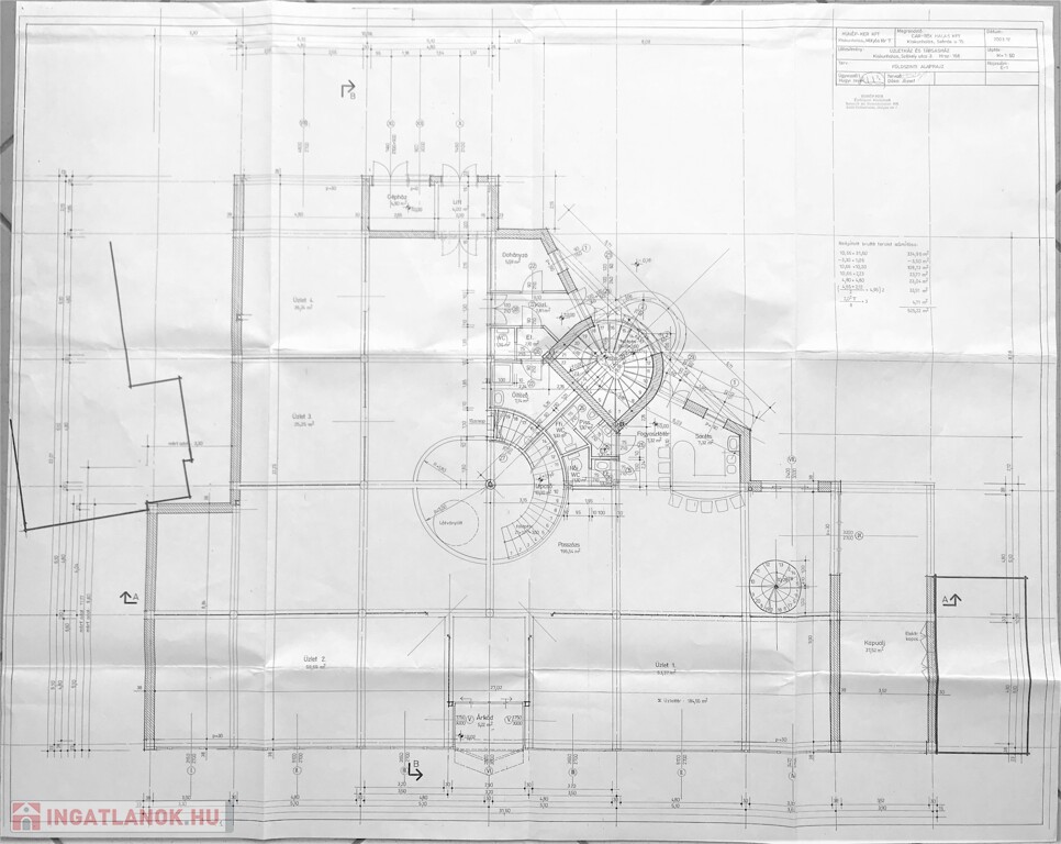 - Földszinten elhelyezkedő helyiségek: árkád (5,22 m2), üzlettér (121,18 m2), passzázs (155,13 m2), lépcső (10,00 m2), szellőző gépház (4,90 m2 ), dohányzó (5,59 m2), közlekedő (7,81 m2), előtér (2,10 m2), WC (1,35 m2), öltöző (5,29 m2), előtér (1,20 m2), női WC (1,30 m2), előtér (1,10 m2), piszoáre (1,30 m2), férfi WC (1,33 m2), söntés (15,50 m2), vendéglátó egység fogyasztótere (65,80 m2), WC (1,85 m2), kapualj (37,52 m2), szendvics előkészítő (10,00m2), húselőkészítő (2,40m2), mosogató (2,80m2).