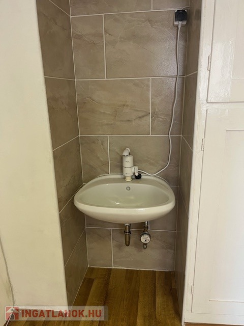 Hideg-meleg vizes kézmosó bent, vizesblokk (zárt) a folyosón.