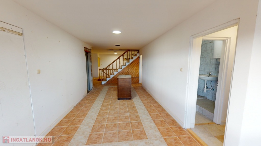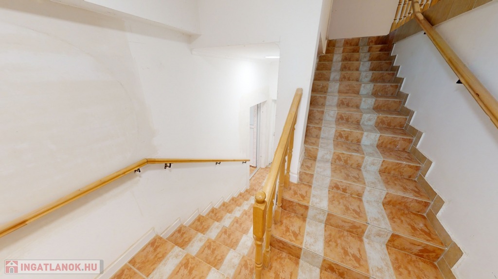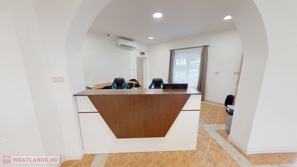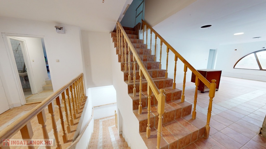 A földszinten találhatunk egy hatalmas nagy teret. Gyönyörű szép burkolattal, fallal, spotlámpákkal. Gyönyörű kilátással a környezetre. Képzeljük el, hogy akár egy étteremként, akár egy bemutató teremként – attól függően, hogy mire kívánjuk használni az ingatlant – kiválóan funkcionálhat a mellette levő külön teremmel, recepcióval, és a hozzá tartozó tárolókkal együtt.