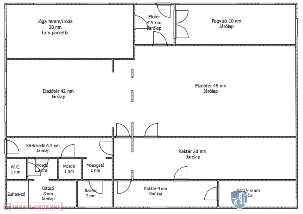 Felújított állapotú, költségmentes, külső szigeteléssel ellátott, előírás szerinti személyzeti helyiségekkel, raktárakkal, rakodási útvonalakkal rendelkezik.