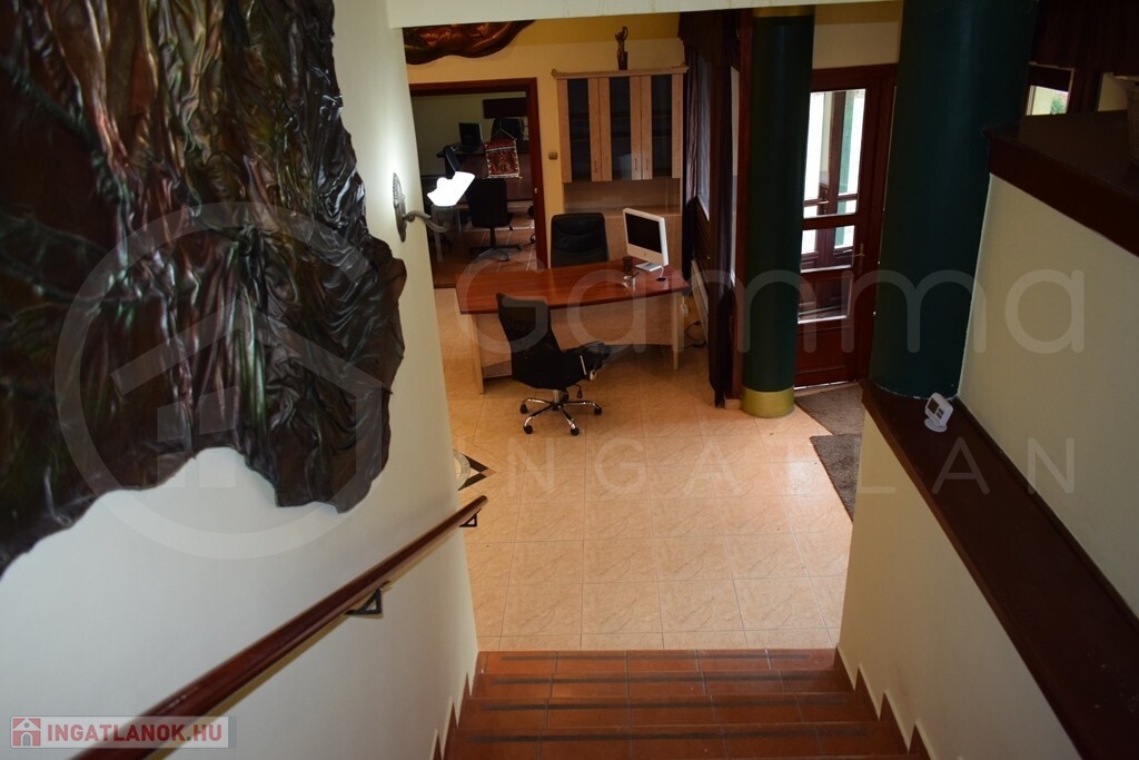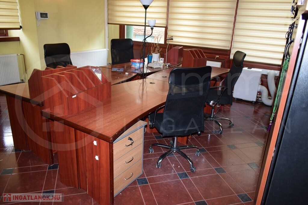 A Miskolc belvárosában elhelyezkedő, 220 m²-es, téglaépítésű irodaház egy tágas, 866 m²-es telken fekszik, amely kiváló lehetőséget nyújt a jövőbeli bővítésre. Az egyedi, eltolt szintes belső tér egy 160 m²-es földszinti részből és egy 60 m²-es emeleti szintből áll, ahol előtér, hat irodahelyiség, mosdó és WC került kialakításra. Az épület fűtését gázkazán biztosítja radiátoros hőleadókkal. A falak festettek, a padlózat járólappal burkolt. A nyílászárók fa tokozású hőszigeteltek.