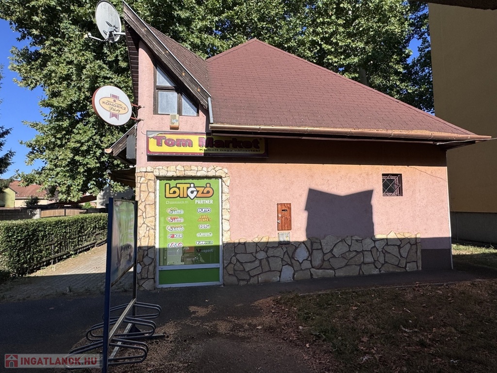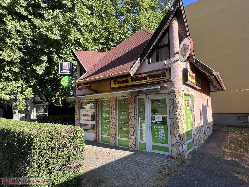 Helyiségek: eladótér, árusítótér, kiszolgálótér, 2 raktár, tetőtérben kiszolgálótér, 2 külön Wc mosdóval, tároló.