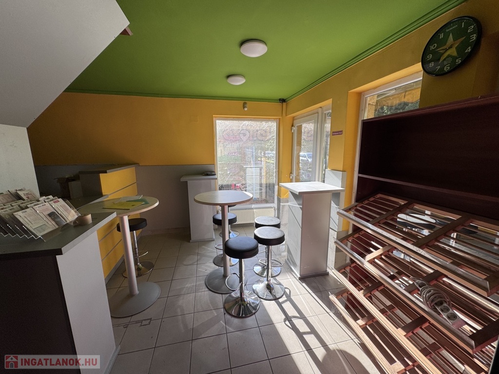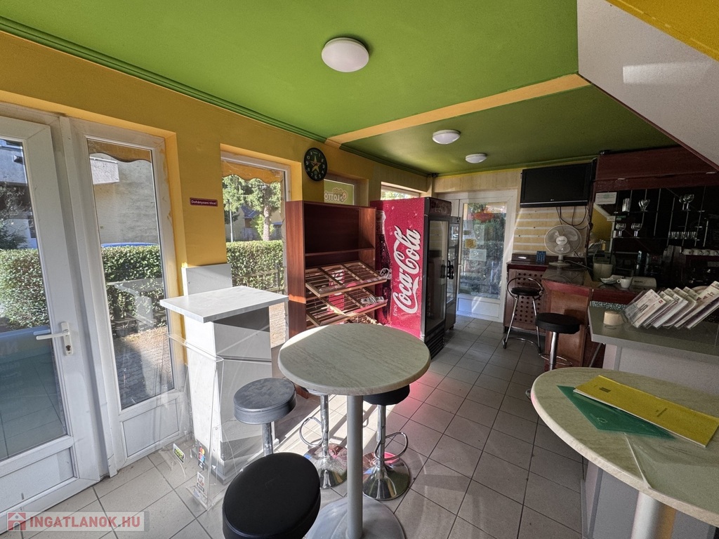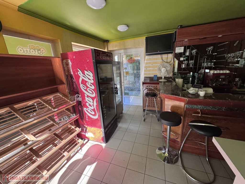 Korábban pékségként, presszóként és lottózóként üzemelt, 1,5 éve zárt be. Az üzlethelyiség azonnal használatba vehető, a teljes berendezés – pult, kávégép, hűtők, bútorok – a vételár részét képezik.