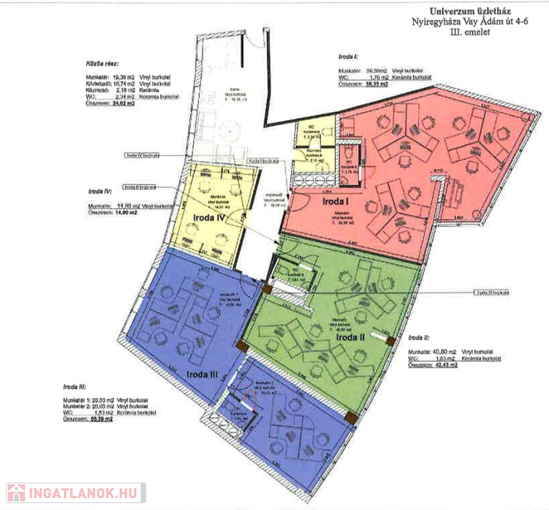 Munkatér mérete: 40,1m² – tágas, világos, jól bútorozható