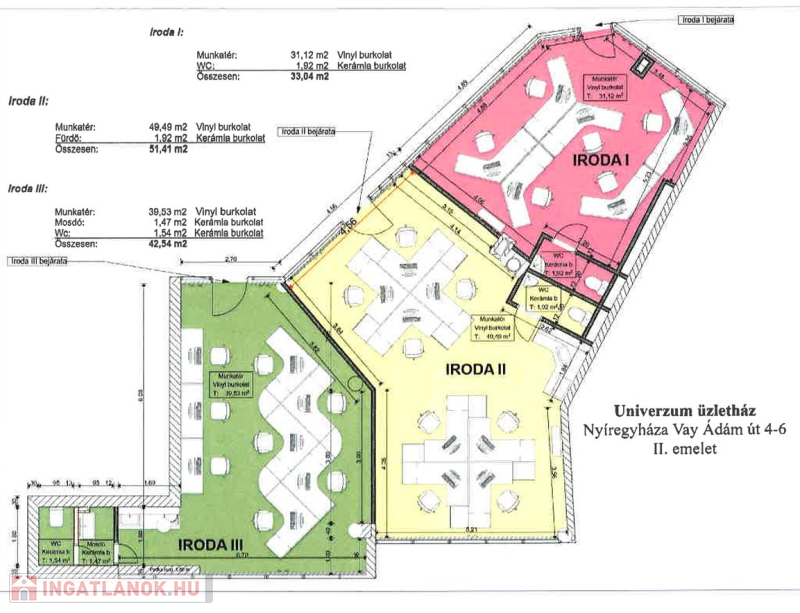 Munkatér mérete: 36,3 m² – tágas, világos, jól bútorozható