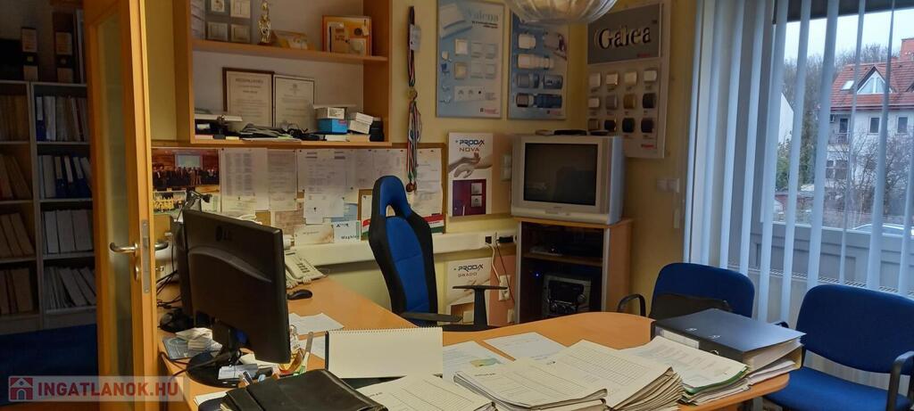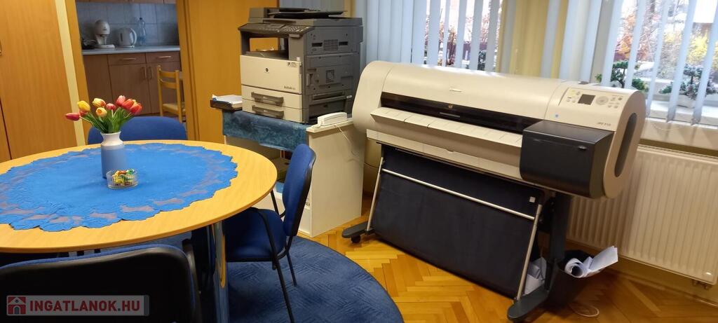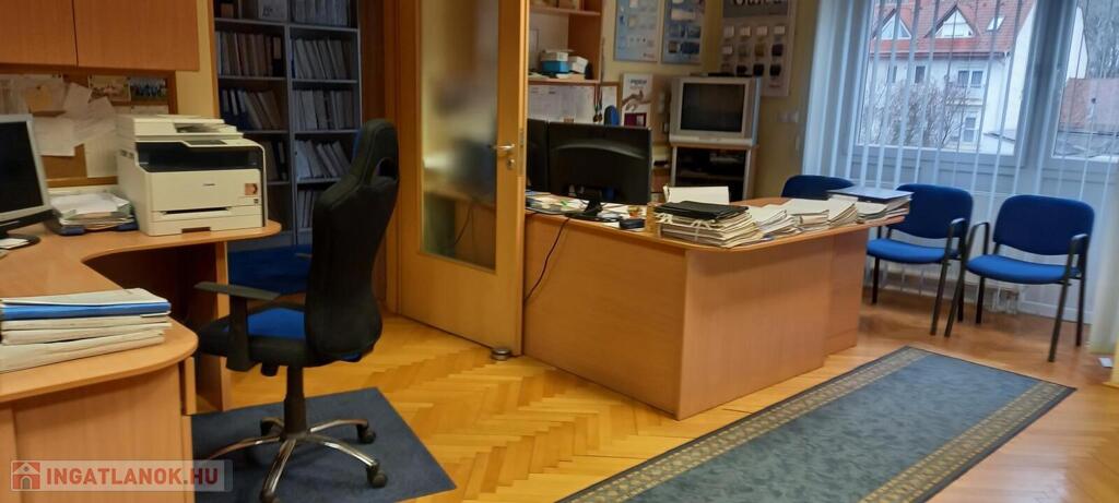 Az iroda három különálló, jól szeparált helyiségből áll, emellett külön konyha, fürdőszoba és WC is kialakításra került. Az erkély világos, kellemes munkakörnyezetet biztosít. A műanyag nyílászárók, a gázcirkó fűtés és a három darab klímaberendezés egész évben komfortos használatot tesznek lehetővé.