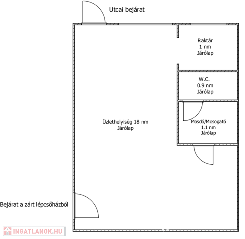 Az ingatlanban 18 nm eladótér, szociális blokk, valamint egy raktárhelyiség található.