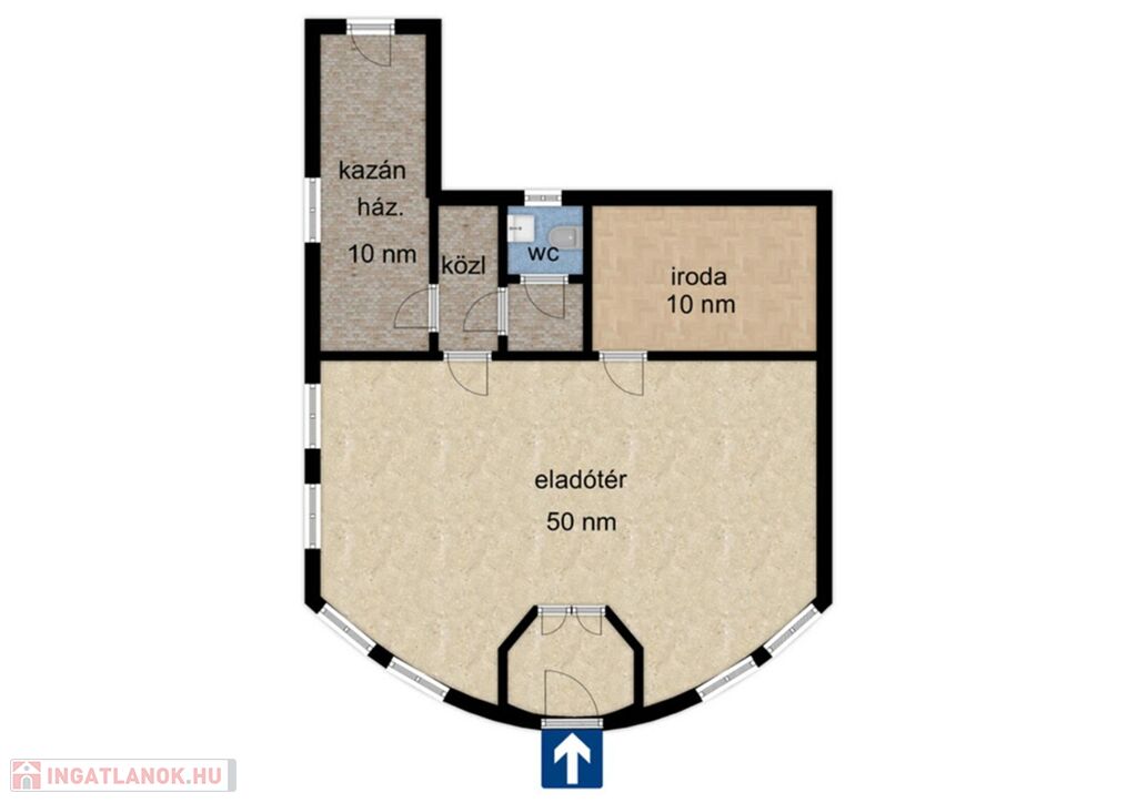 - Nagy eladótér,külön iroda helyiség,WC,raktár.