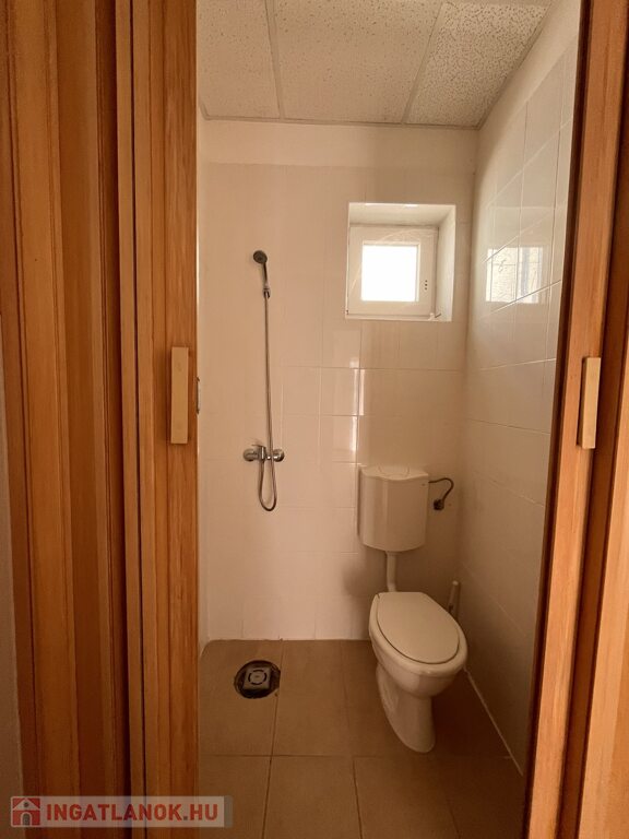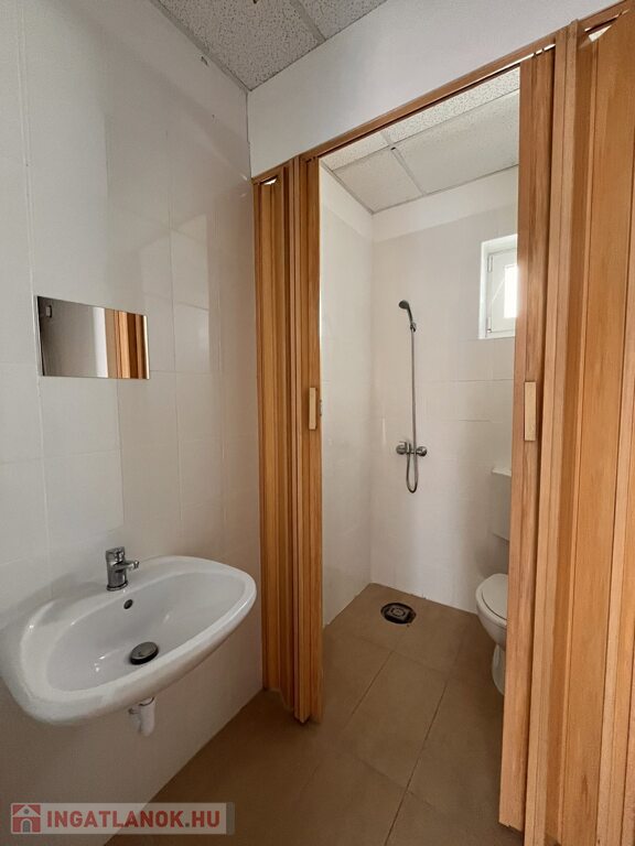 Üzlet elosztása: egy nagy helység 71.87 nm, egy kisebb 8.74 nm (ez lehet konyha- mosogató), öltöző, zuhanyzó+ Wc. és egy Wc. kézmosóval.