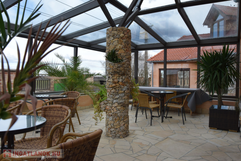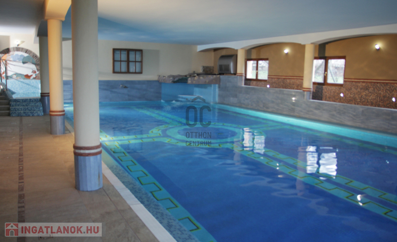 A hotelből a mélygarázsba, illetve az étterembe föld alatti összeköttetésen keresztül is el lehet jutni, mely felett 3 rétegű üveg felülvilágító található. Teniszpályánál öltözésre alkalmas melléképület, a kerti medencénél külső gépház, a medence teraszon női/férfi toalett, és zuhanyzó található. A felszíni parkoló 20 autó részére biztosít helyet. Az ingatlan területe 4900m2 a felépített létesítmény 2400m2 -t meghaladja. A pályákat nem számolva.