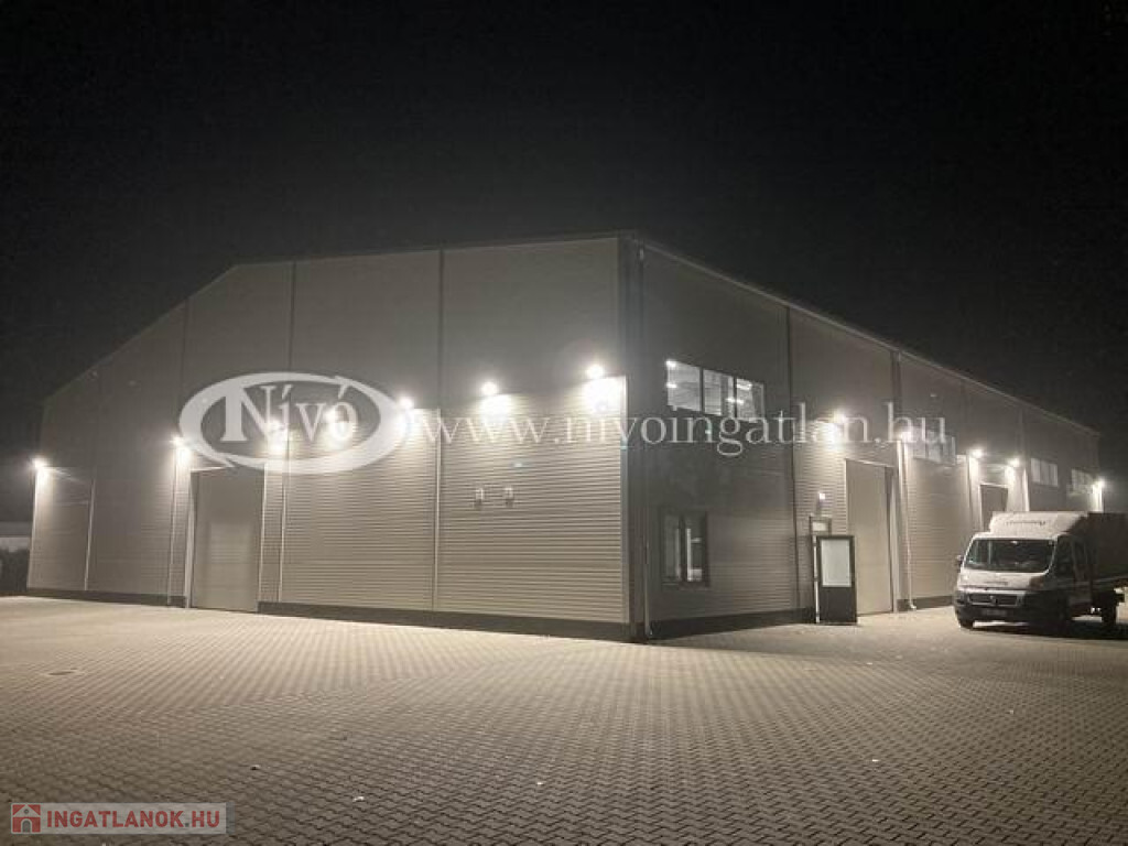 A raktár 8 cm-es szendvicspanelből épült, nem fűtött, de fagymentes. Aljzata ipari beton, nagy teherbírású. 3 db ipari kapuval (4mx4m) ellátott, vállmagasság: 7,5 m. Az ingatlan 11 db kamerával felszerelt, biztonsági rendszer kiépített. Az ingatlanon kívül külső világítás is van. Elektromos áram ellátása: 3x80 A.