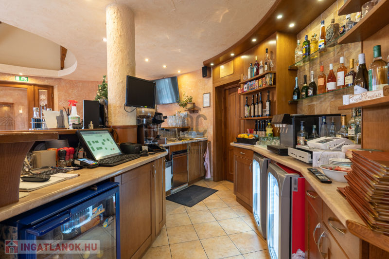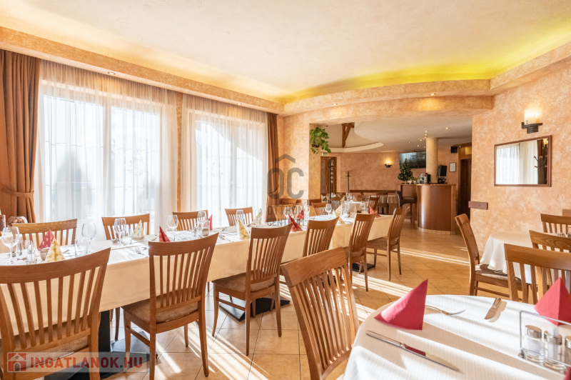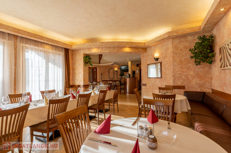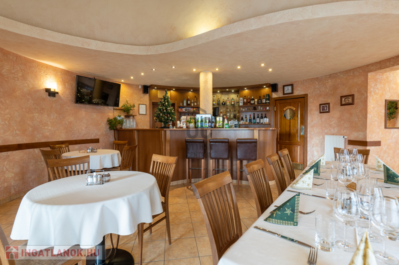 Az ingatlan földszinti részén szakmailag elismert, igényes 50-60 fő befogadására alkalmas étterem mű-