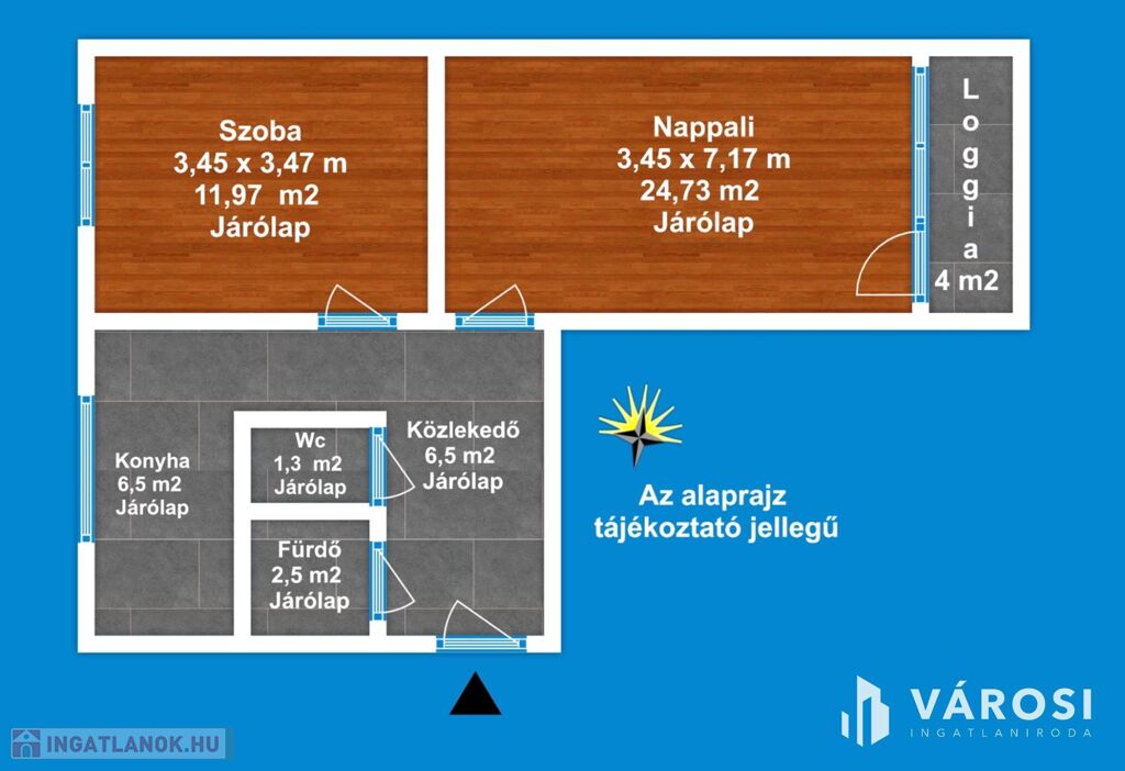 A lakás 1 db nappalival, 1 db hálószobával, 1 db fürdőszobával, külön Wc-vel, közlekedővel, loggiával rendelkezik. Az ingatlan elhelyezkedésre, kialakítása miatt rendkívül sokrétű a felhasználása - akár lakás, vagy befektetési célra -, amely maximálisan kiemeli ezt az ingatlant az átlagos lakások sorából és egyedülálló választássá teszi azt.