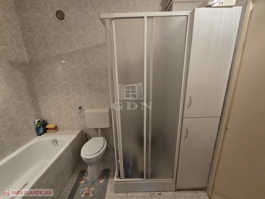 - Nagy méretű fürdőszoba káddal és zuhanyzóval, ahol a WC is helyet kapott.