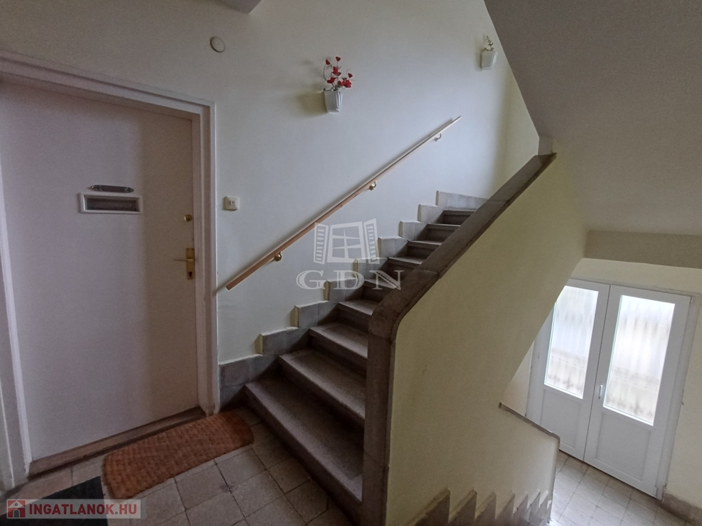 A lépcsőház rendezett, igényes, jó lakóközösséggel.
