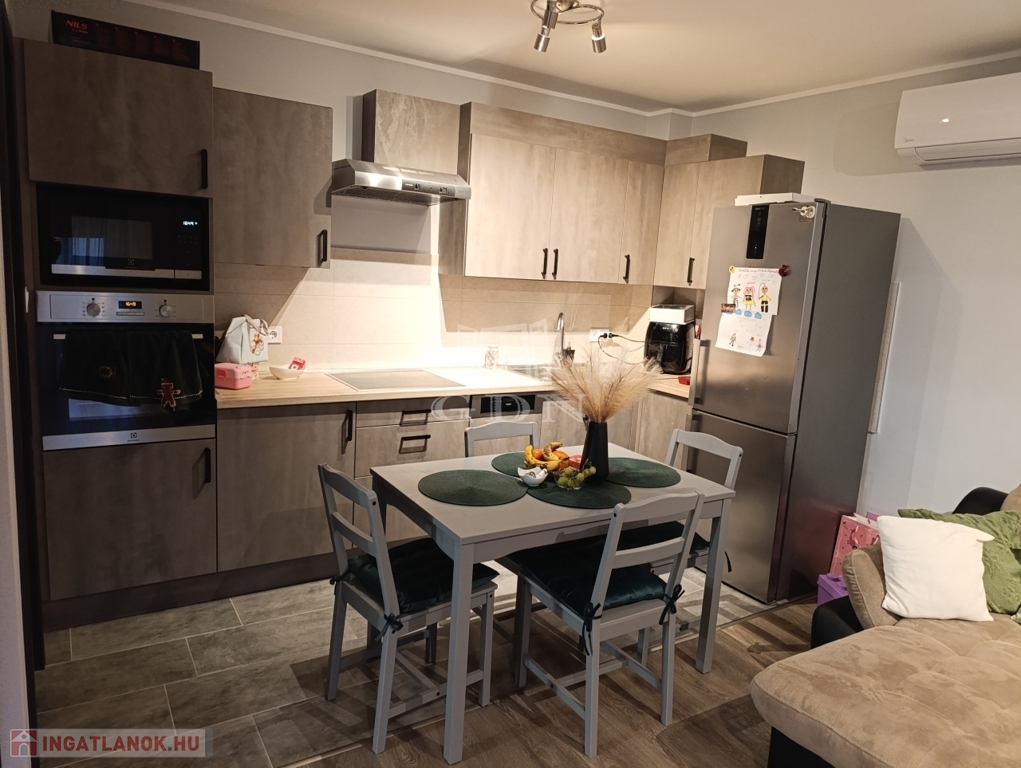 Eladásra kínálunk egy 2024-ben épült 61 m²-es, földszinti, 2 szobás, kertkapcsolatos lakást, amelyhez 19 m²-es, saját garázs is tartozik.