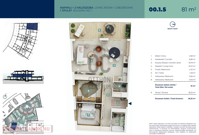 Az ingatlanpiac legújabb gyöngyszeme várja Önt és családját! Ez a kiváló állapotú, új építésű lakás ideális választás mindenki számára, aki a modern életstílust és a prémium kivitelezést keresi. Az ingatlan alapterülete 81m2, amely két tágas szobát kínál hatalmas nappalival, így bőven elegendő helyet biztosít a családi élethez. A 18m2-es terasz tökéletes helyszín a pihenésre és a szabadban eltöltött időre. A lakás minimalista kialakítása és világos, barátságos terei azonnal magukkal ragadják az érdeklődőket. Az ingatlan okos otthon rendszerrel van felszerelve, amely lehetővé teszi a modern technológiák egyszerű és kényelmes használatát. Az elektromos (fan-coil) fűtés-hűtés gondoskodik a maximális komfortérzetről, míg az automata öntözőrendszer a kert szépségét megőrzi. A lakópark, amelyben az ingatlan található, exkluzív környezetet biztosít, és a csendes, rendezett kertje a nyugalom szigetét nyújtja a város forgatagában. A medence lehetőséget ad a családok számára a közös időtöltésre, míg a portaszolgálat biztonságot és kényelmet nyújt. Az ingatlan közlekedési csomópont közelében helyezkedik el, így a város tömegközlekedési lehetőségei könnyen elérhetők. A környék ellátottsága kiváló, hiszen a közelben találhatóak bolt, iskola, óvoda és orvosi rendelő, így minden szükséges szolgáltatás könnyedén elérhető. A biztonságos és csendes környezet ideális helyszínt biztosít a családok számára, akik a nyugodt életet keresik. Egy ilyen egyedi tervezésű ingatlan nem mindennapi lehetőség, ezért érdemes mielőbb megtekinteni! Kérjük, ne habozzon felkeresni bennünket, amennyiben bármilyen kérdése van a lakással, lakóparkkal, vagy a környékkel kapcsolatban.