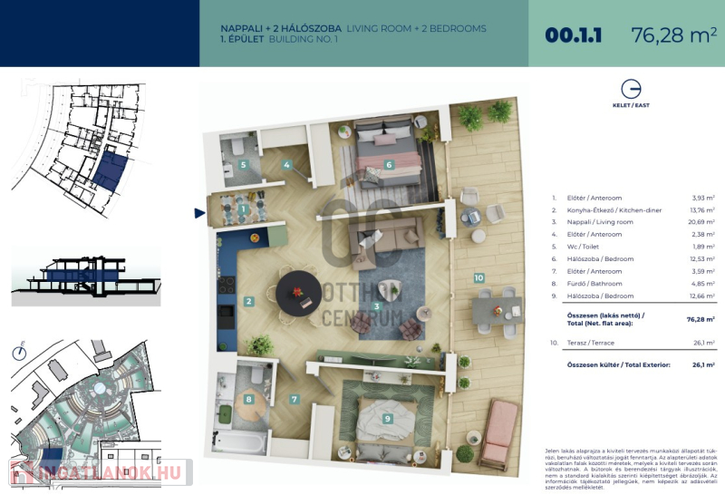 Az ingatlanpiac legújabb gyöngyszeme várja Önt és családját! Ez a kiváló állapotú, új építésű lakás ideális választás mindenki számára, aki a modern életstílust és a prémium kivitelezést keresi. Az ingatlan alapterülete 76m2, amely két tágas szobát kínál hatalmas nappalival, így bőven elegendő helyet biztosít a családi élethez. A 26m2-es terasz tökéletes helyszín a pihenésre és a szabadban eltöltött időre. A lakás minimalista kialakítása és világos, barátságos terei azonnal magukkal ragadják az érdeklődőket. Az ingatlan okos otthon rendszerrel van felszerelve, amely lehetővé teszi a modern technológiák egyszerű és kényelmes használatát. Az elektromos (fan-coil) fűtés-hűtés gondoskodik a maximális komfortérzetről, míg az automata öntözőrendszer a kert szépségét megőrzi. A lakópark, amelyben az ingatlan található, exkluzív környezetet biztosít, és a csendes, rendezett kertje a nyugalom szigetét nyújtja a város forgatagában. A medence lehetőséget ad a családok számára a közös időtöltésre, míg a portaszolgálat biztonságot és kényelmet nyújt. Az ingatlan közlekedési csomópont közelében helyezkedik el, így a város tömegközlekedési lehetőségei könnyen elérhetők. A környék ellátottsága kiváló, hiszen a közelben találhatóak bolt, iskola, óvoda és orvosi rendelő, így minden szükséges szolgáltatás könnyedén elérhető. A biztonságos és csendes környezet ideális helyszínt biztosít a családok számára, akik a nyugodt életet keresik. Egy ilyen egyedi tervezésű ingatlan nem mindennapi lehetőség, ezért érdemes mielőbb megtekinteni! Kérjük, ne habozzon felkeresni bennünket, amennyiben bármilyen kérdése van a lakással, lakóparkkal, vagy a környékkel kapcsolatban.