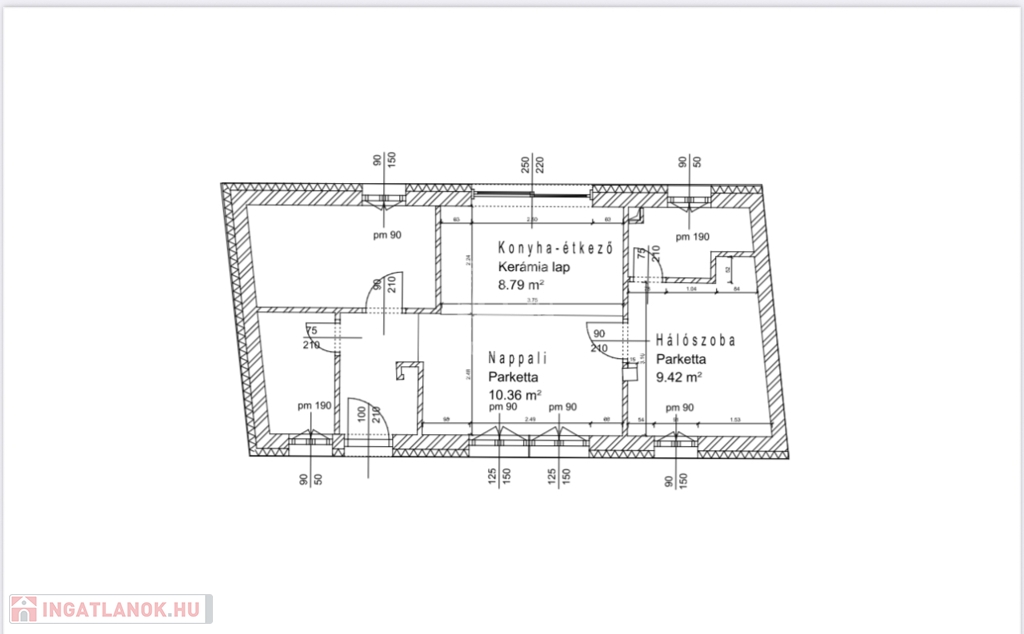- Nappali–konyha–étkező: 22,75 m²