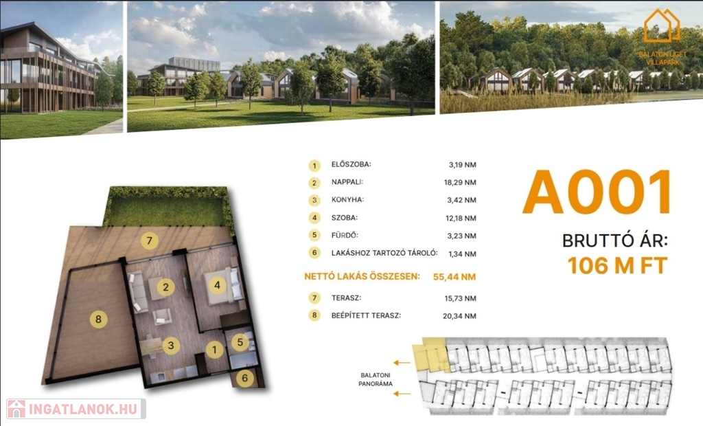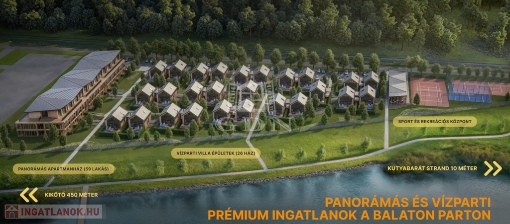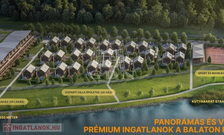 Modern letisztult építészet, tömegformálás, Balatonra tájolt panorámás teraszok.