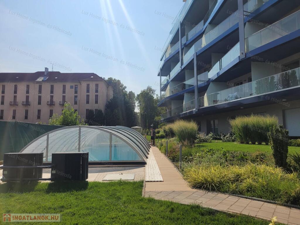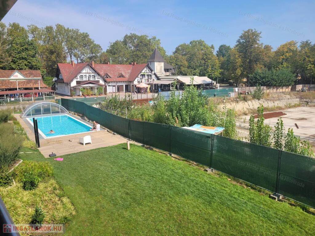 -A társasházhoz tartozik egy impozáns, 12 méteres kültéri medence is, ahol a nyári hőségben felfrissülhet, vagy élvezheti a nap sugarait a vízpart közelében. És ha mégis inkább a Balatonban úszna, a tó közelsége révén ezt pillanatok alatt megteheti.