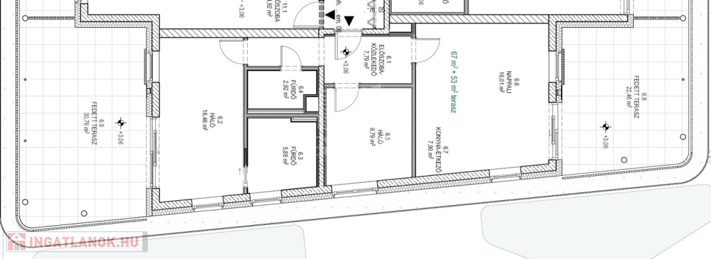 Ez a lakás nappali+3 hálós, 103nm alapterületű+ tartozik hozzá két (14nm+21nm) összesen 35nm fedett terasz is.