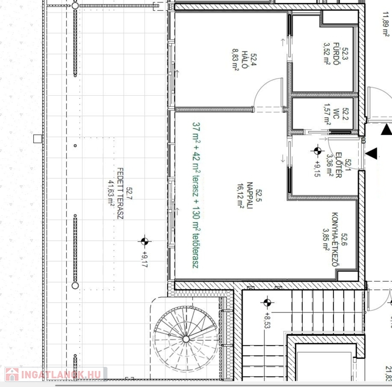 Ez a lakás nappali+ 1hálós, 37nm alapterületű+ tartozik hozzá egy 42nm-es és a tetőszinten található130nm-es zöld terasz is.
