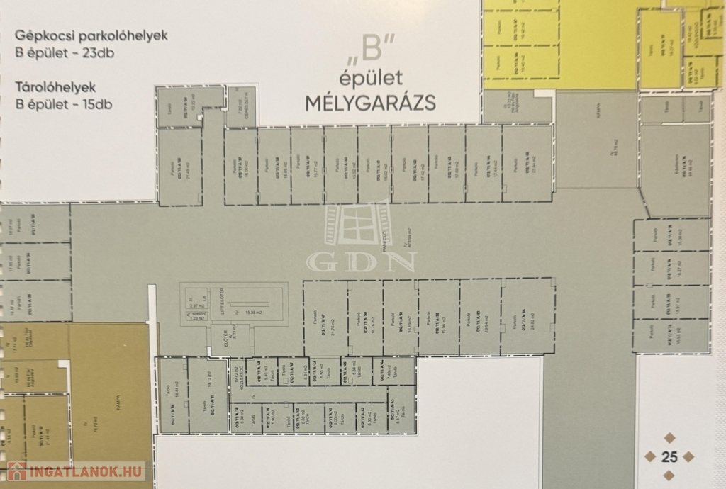 - A mélygarázs és az épület szintjei közti közlekedést 8 személyes látványliftek fogják segíteni
