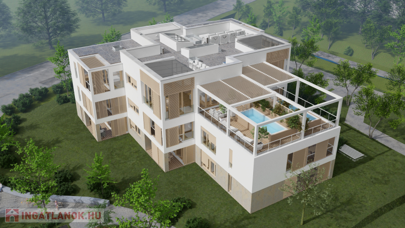 A projekt különlegessége, hogy a legfelső Penthouse lakások medence (6 m X 2,4 m) telepítési lehetőséggel is rendelkeznek. A bioklimatikus pergolával felszerelt teraszok összenyithatóak, ill. télikertként is funkcionálhatnak.