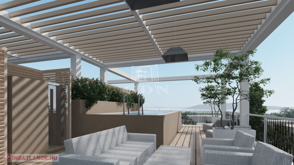 A C/8-as típusú második emeleti penthouse lakás 148,2 négyzetméteres, tartozik hozzá loggia amelyek alapterülete 11,66 négyzetméter valamint egy 54,46 négyzetméteres tetőterasz ahol akár saját medence telepitését is kérheti amelyről a Balatonra csodálatos kilátás nyílhat. A 148,2 négyzetméteren amerikai konyha, 3 hálószoba, nappali, gardróbszoba, 2 fürdőszoba, valamint vendég WC is található. A tetőteraszon napozhat, szaunázhat vagy akár egy 6 méteres medencét is telepíthet. Az ingatlanhoz mélygarázsok és tárolok is megvásárolhatóak.
