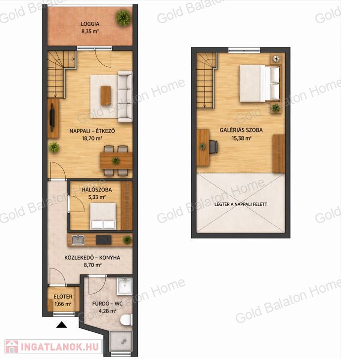 Balatongyörökön galériás, loggiás lakás eladó – panorámával, egész évben használható.