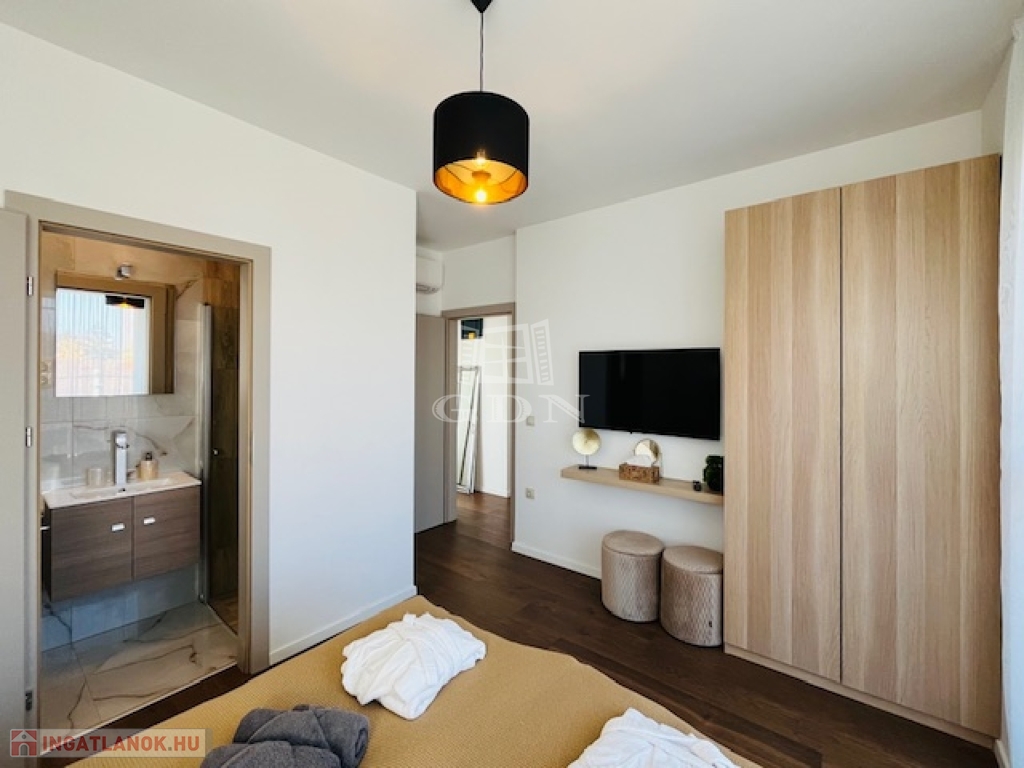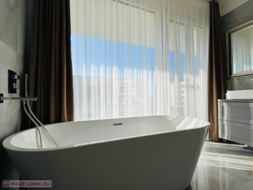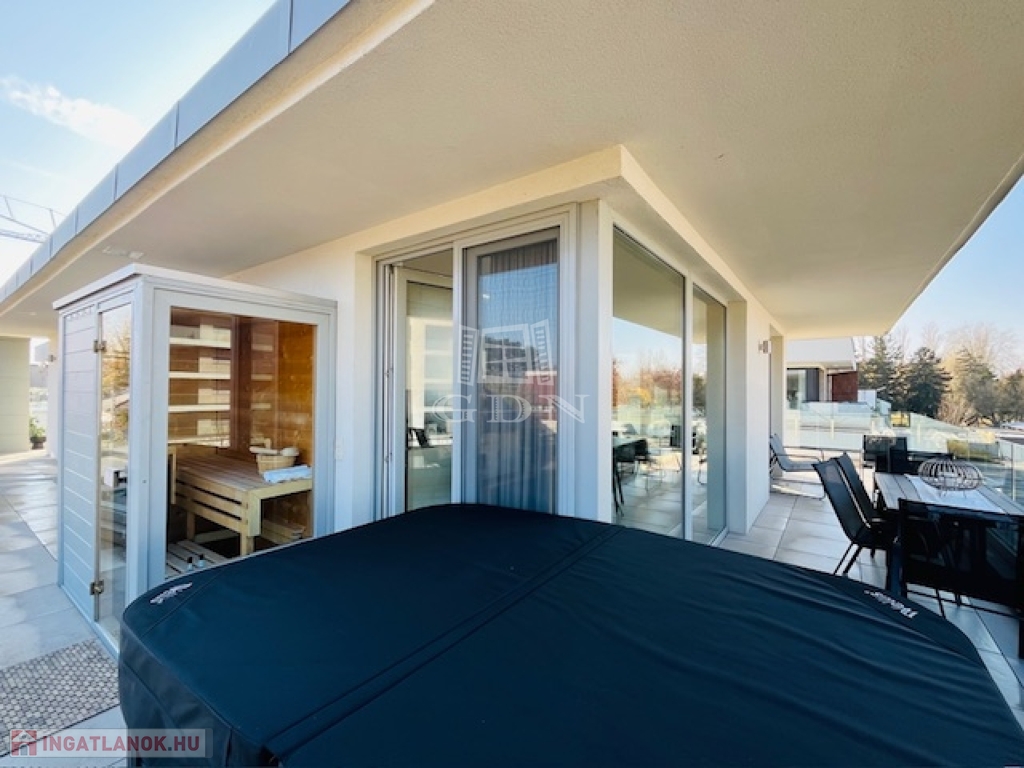 Az exklusív lakóingatlan elegáns nappali életteret, valamint kettő hálószobát és két fürdőszobát kínál a maximális komfortérzet biztosításához. A körpanorámás terasz pedig minden lehető luxust biztosít használói számára, s a teraszon bőven elférnek a szauna,a jakuzzi, valamint az étkezést és a pihenést szolgáló bútorok is.