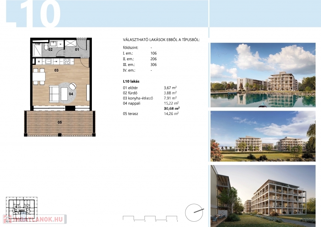 30 nm-es, 1 szobás, 14 nm-es terasszal, elismert szakmai háttérrel rendelkező tervezőiroda által megálmodott lakás, kulcsrakész, 2026 márciusban történő átadással eladó.