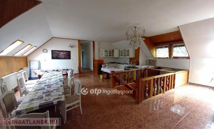 Balaton déli part, Balatonmáriafürdőn eladó egy partközeli étterem tetőterében kialakított 197 m2-es lakás. Külön bejáraton közelíthető meg, parkolni az utcán lehet. Fűtése gázkazánnal és radiátorokkal került kialakításra. A nappali/konyhán kívül 6 szoba található benne, mindegyik külön fürdőszobával. Az épület felújításra szorul.