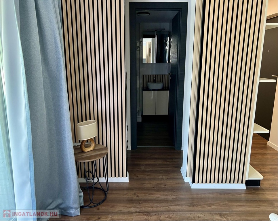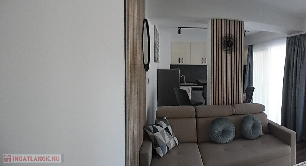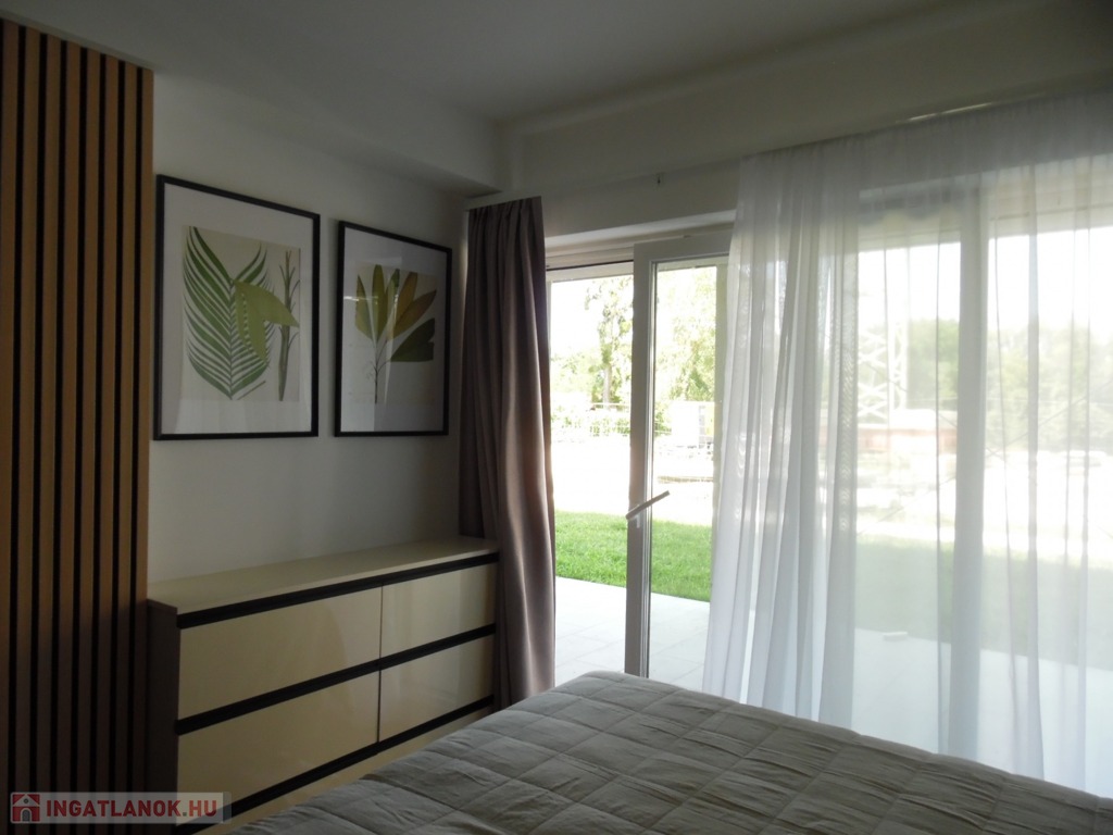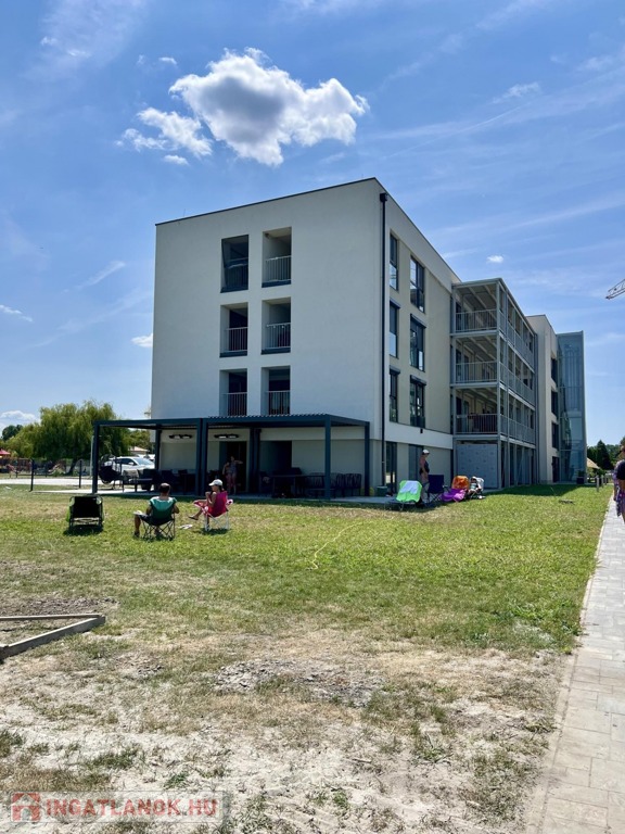 Somogy megye, Balatonmáriafürdő, 54m2-es újépítésű földszinti lakás eladó. A közkedvelt Balaton-parti település strandjának szomszédságában (Part Lakópark) található teraszos (32m2) ingatlanban nappali+konyha+étkező (18m2), hálószoba (9,5m2), fürdőszoba (4m2) valamint közlekedő került kialakításra. Az igényes bútorokkal és gépesített konyhával felszerelt lakás melegéről padlófűtés, a nyári hőség mérsékléséről pedig hűtő-fűtő klíma gondoskodik. További lényeges információk: