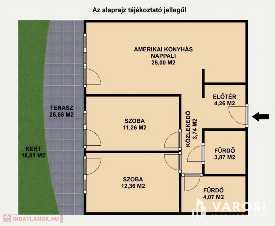 - Ideális elosztás: Az amerikai konyhás nappali, 2 szoba, 2 fürdőszoba kényelmes életteret nyújt családoknak vagy vendégek fogadására is.