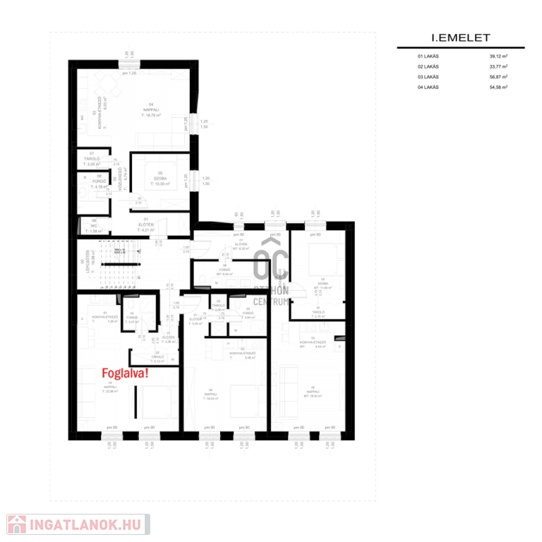 A hirdetésben szereplő 1. emeleti, lakás 57 m2-es.