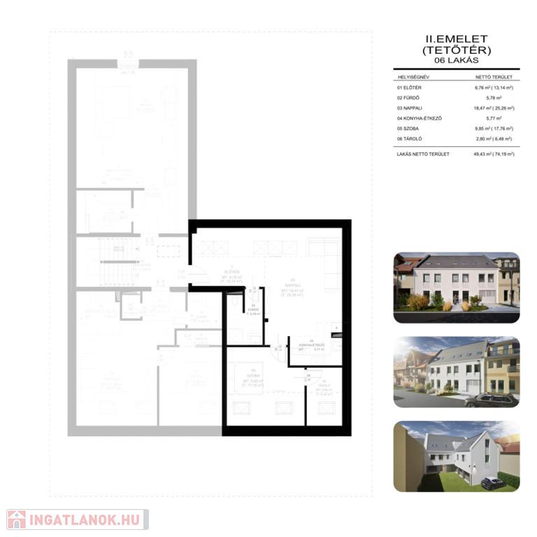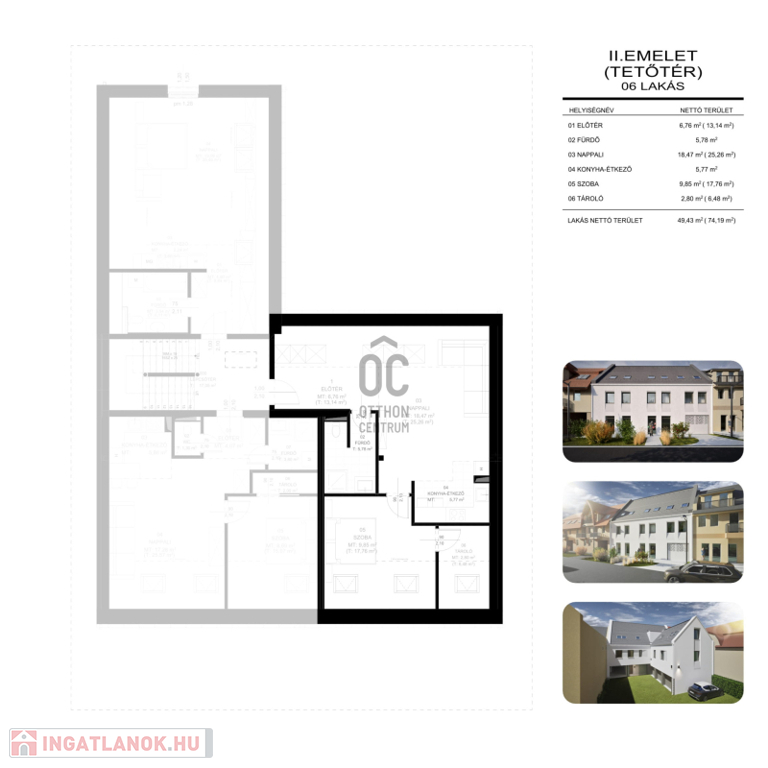 -nettó 50 m2, bruttó 75 m2 lakótérrel